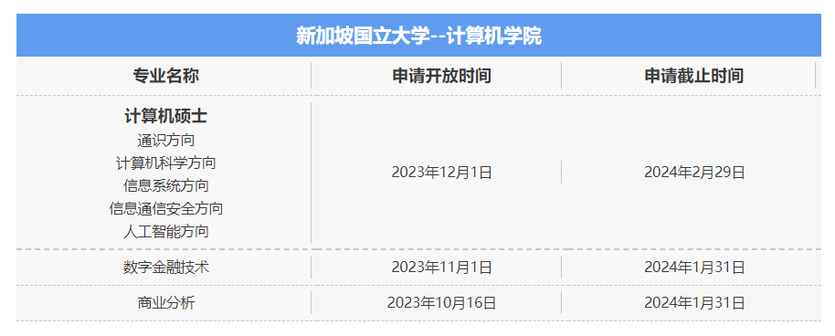 新加坡国立大学除了设计与工程学院更新了24Fall申请时间以外,还有其他专业也更新了申请,具体如下,大家可以看看哦!