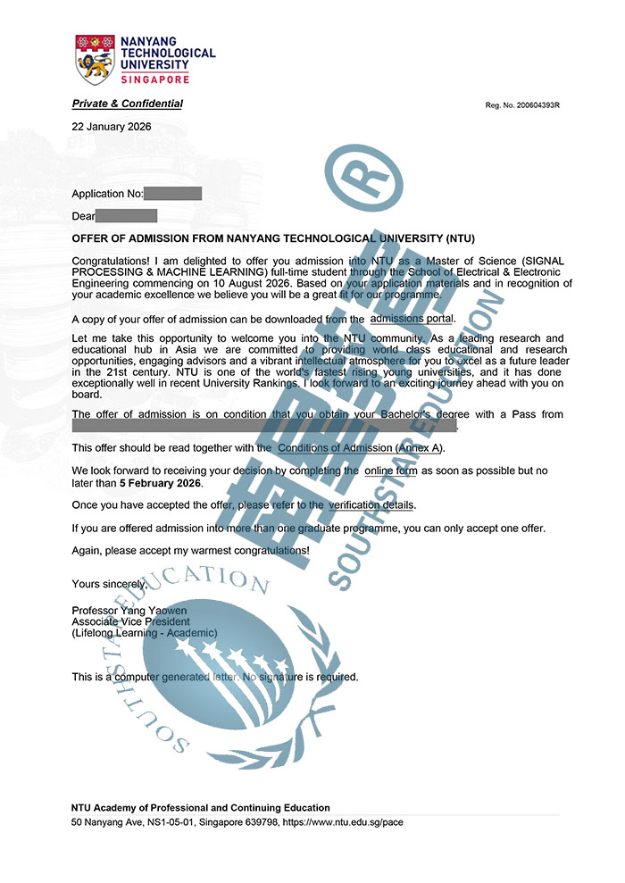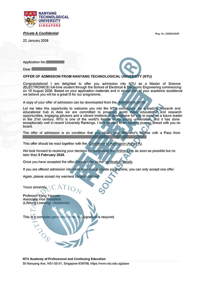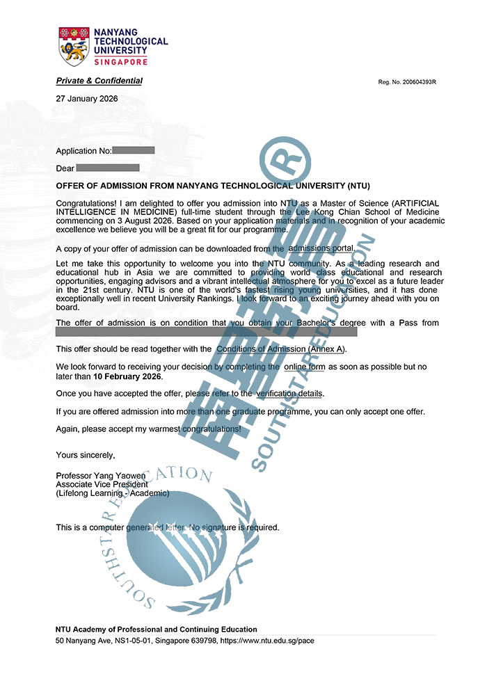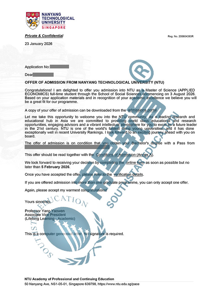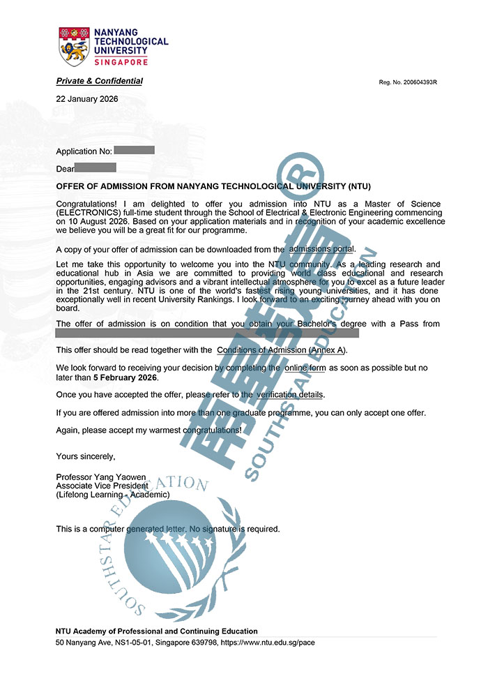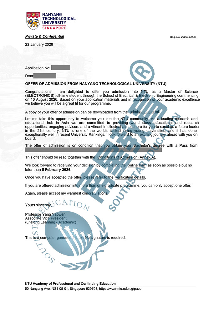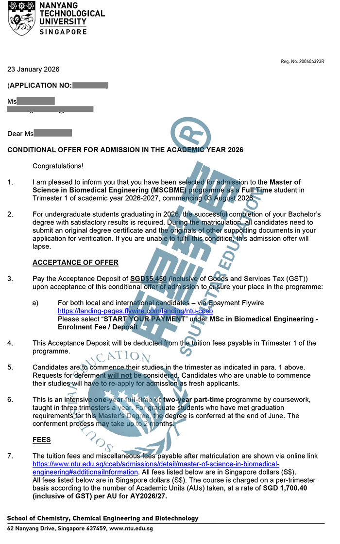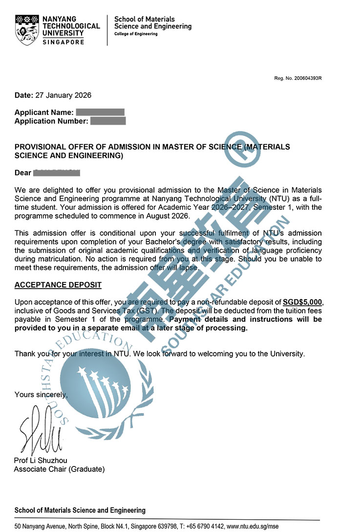 | 预估费用 | 总学费55030新币;生活费约14万人民币/年,1年就读结束总费用约44万人民币。 |