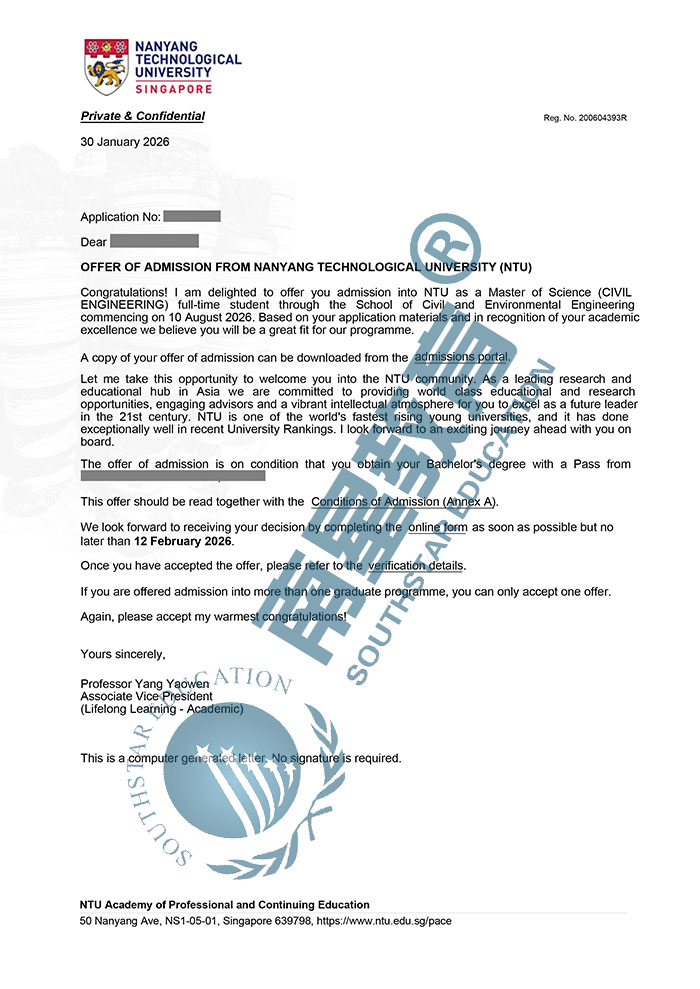 | 预估费用 | 总学费60,000新币;生活费约14万人民币/年,1年就读结束总费用约50万人民币。 |
