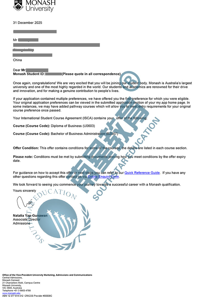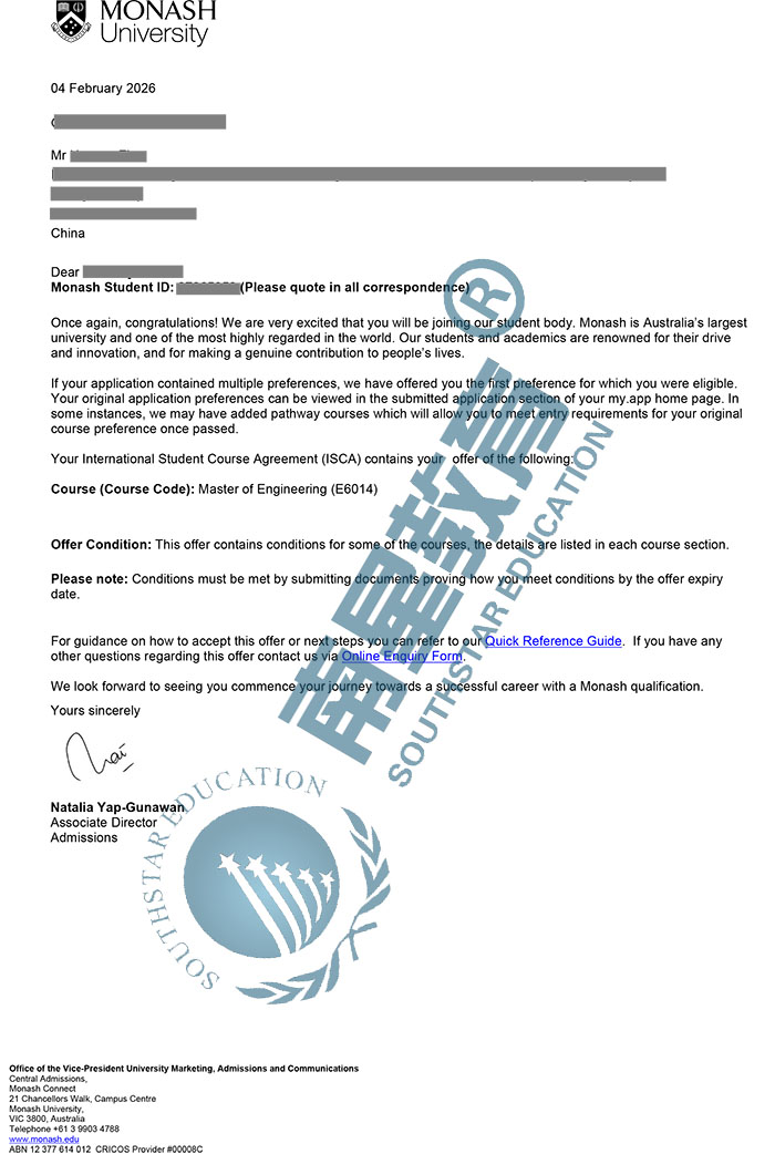 莫纳什大学(Monash University),世界百强名校,澳大利亚顶尖学府,澳大利亚常春藤名校联盟“八大名校”(Group of Eight)之一,澳大利亚五星级大学。1958年由国会建立,为纪念杰出的澳大利亚军人、学者兼工程师约翰·蒙纳士爵士,大学以其姓氏命名,官方中文名称为蒙纳士大学。莫纳什大学以其卓越的教学和精湛的科研而在国际享有声誉,莫纳什大学是澳大利亚规模最大的国立大学之一,其综合实力名列前茅,也是著名的密集研究型大学。